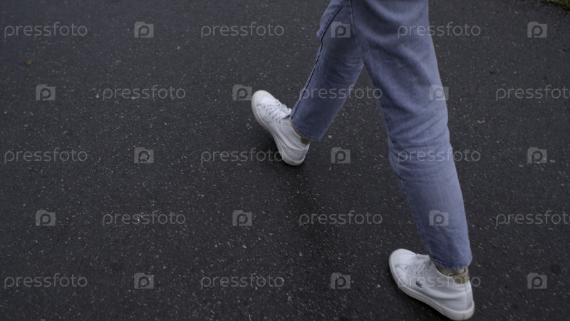 Близкий план мужчины, идущего в белых ботинках по мокрому асфальту. Скриншоты. Белые кроссовки на мокром асфальте. Мужчина ходит в чистых белых туфлях на влажном асфальте