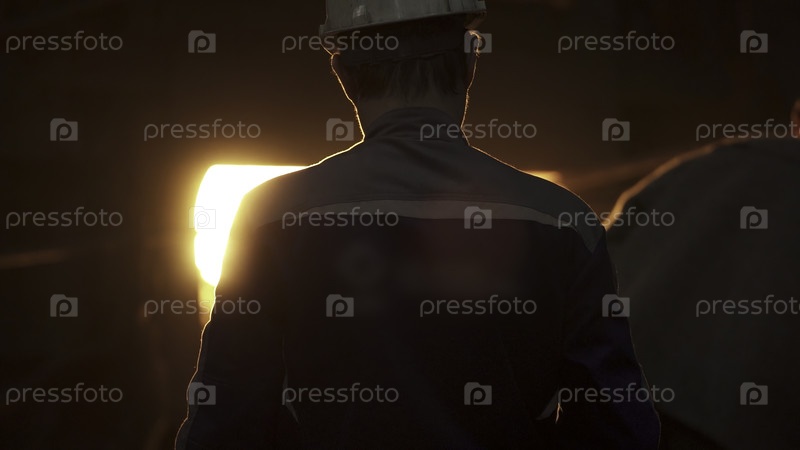 Работники в промышленной среде, занятые ярким и сияющим светом печи