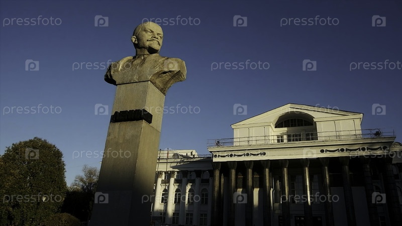 Памятник Ленину.Клип.Статуя с головой Ленина на улице возле университета и парков