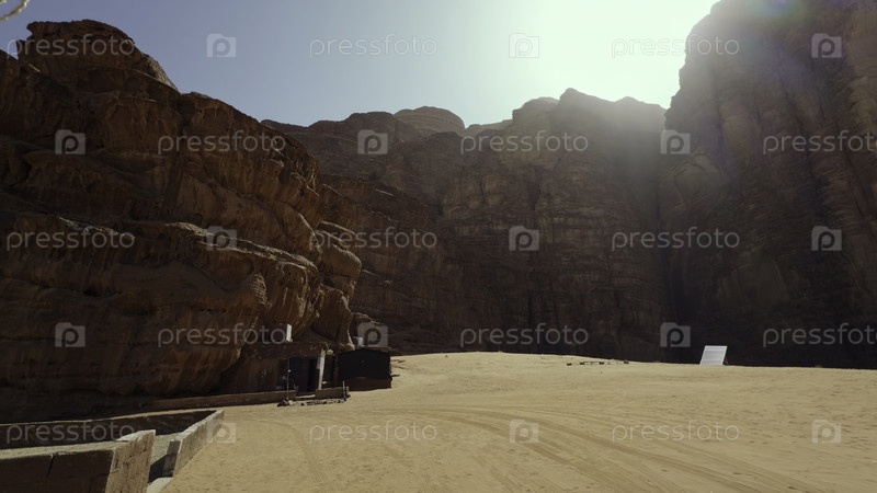 Погрузитесь в захватывающий дух и величественный пустынный каньон, демонстрирующий потрясающие скальные образования под блестящим солнечным светом