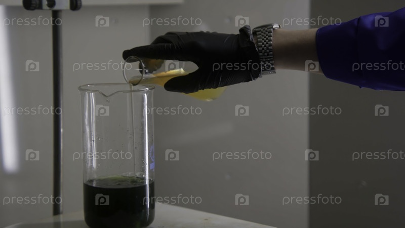 Ближайшее изображение мужчины, заливающего смесь в стакан с раствором внутри