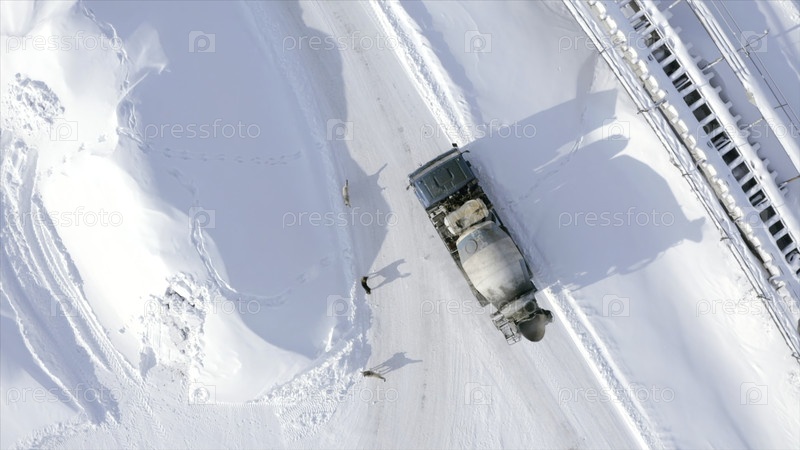 Зимние бродячие собаки. Клип. Вид сверху лысящих собак зимой. Собаки лают на квадрокоптер в солнечный зимний день