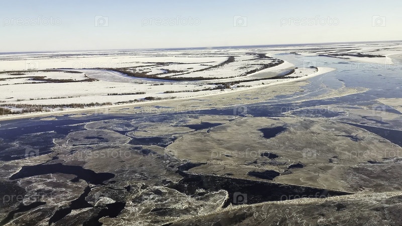 Вид с воздушного дрона замерзших озер в болоте зимой. Клип. Бесконечные покрытые снегом поля и болотные массивы