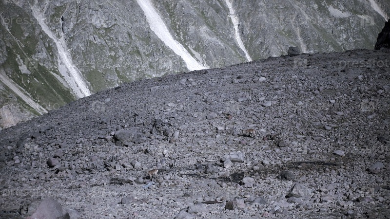 Вид природы с высоты птичьего полета.Клип.Разбитые камни, по которым бегают хищные животные