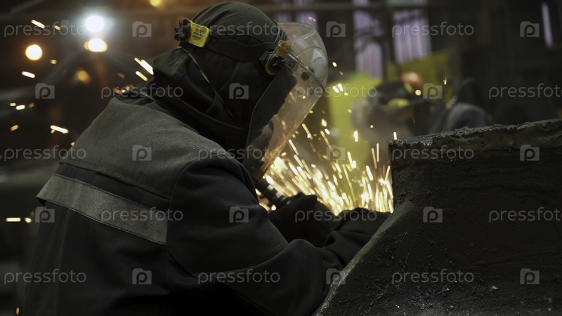 В оживленной промышленной среде высококвалифицированный рабочий искусно сварляет кусочки металла, вокруг которых летают искры
