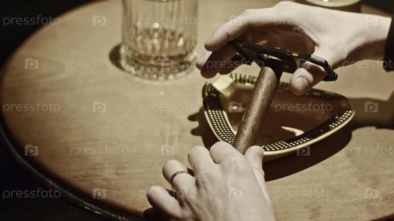 Близкий план человека, режущего сигару СМИ Мужчина отрезает край виагры для курения Профессиональный нож, разрезывающий сигары в кубинском клубе