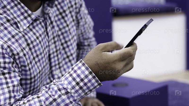 Мужчина спокойно проверяет свой смартфон, сидя, подчеркивая суть современных технологий в расслабленной атмосфере