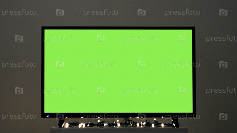 Зеленый экран телевизора в гостиной.Концепция.Экран клавиатуры Chroma для рекламы