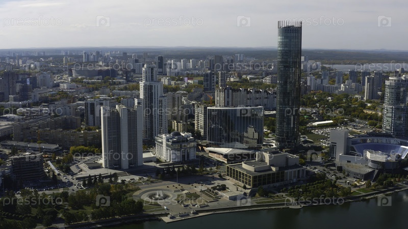 Вид сверху на красивый современный город с рекой в солнечный день. Скриншоты. Красивая панорама города с многоэтажными зданиями в солнечный летний день. Лето в современном городе с небоскребами и рекой