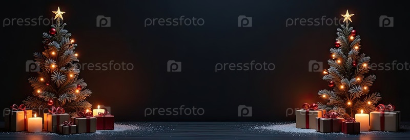 Приглашение на рождественскую открытку с пространством для текста в рамке на черном фоне со светящейся елкой и блеском