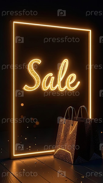 Продажа на черном фоне. витрина магазина для Черной пятницы, скидки, сумки с покупками, созданный ИИ