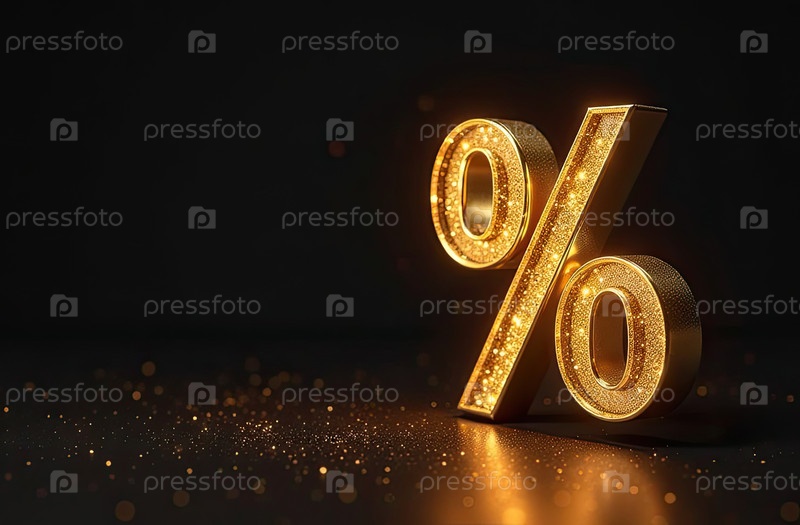 Неон светящийся золотой процентный знак на черном фоне. витрина магазина для Черной пятницы, распродажи, скидки, сумки для покупок. баннер, флаер. AI generated
