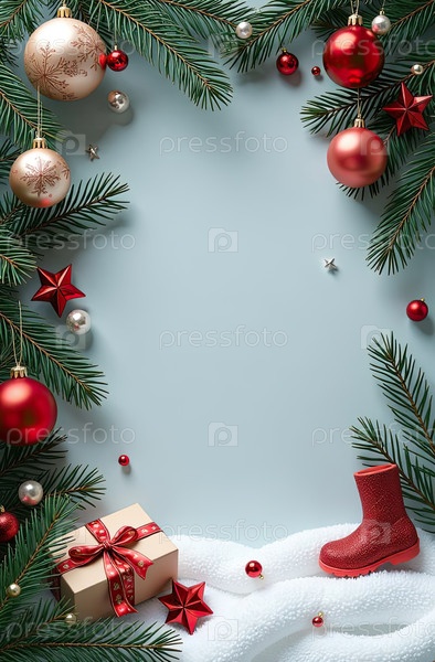 Приглашение на Рождественскую и новогоднюю вечеринку с рамкой рождественского декора с местом для текста