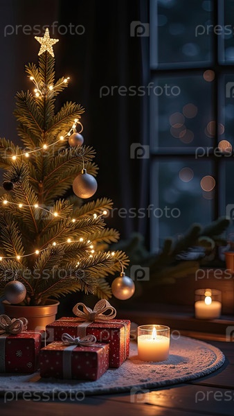 Приглашение на рождественскую открытку с пространством для текста в рамке на черном фоне со светящейся елкой и блеском