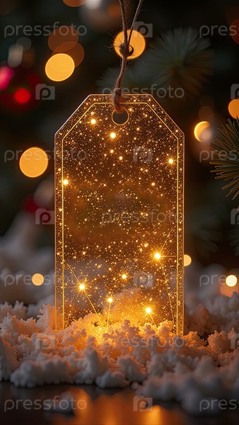 Светящийся золотой пустой ценовой знак с блеском на рождественском фоне. флаер для Черной пятницы, новогодняя этикетка, Рождественская распродажа, скидки. ИИ генерируется
