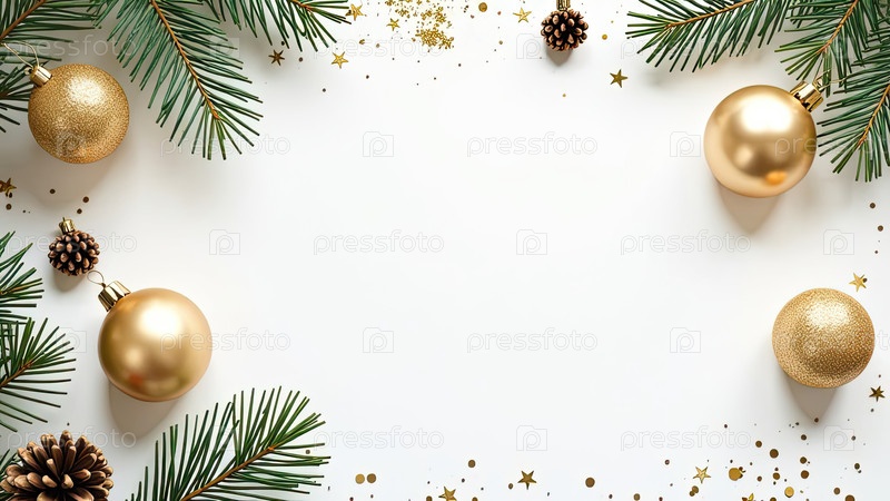 Приглашение на Рождественскую и новогоднюю вечеринку с рамкой рождественского декора с местом для текста на белом фоне