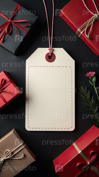 Ценник с пространством для текста на черном фоне. Покупки и скидки, распродажа в Черную пятницу, сумки покупок, подарочная коробка. баннер, флаер. ИИ генерируется