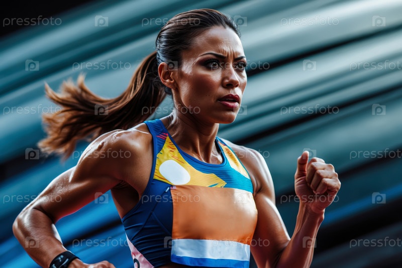 Женщина спортсмен джогер бег гонка марафон, летние виды спорта