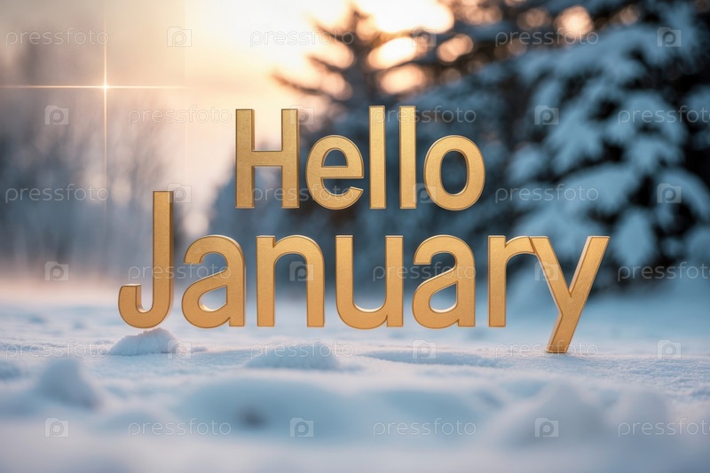 AI Generative Баннер поздравительной карточки с надписью Здравствуйте, январь на фоне снежного леса