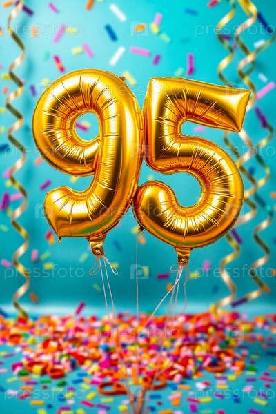 Гелий день рождения воздушный шар формы номер девяносто пять, золотые буквы фигура 95 праздник праздничный фон декор