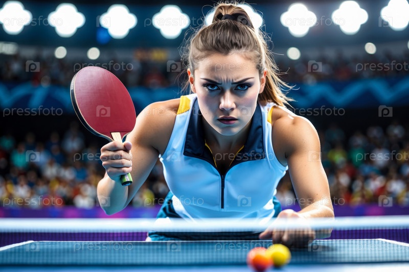 AI Generative Женщина-спортсменка играет в настольный теннис на чемпионате мира