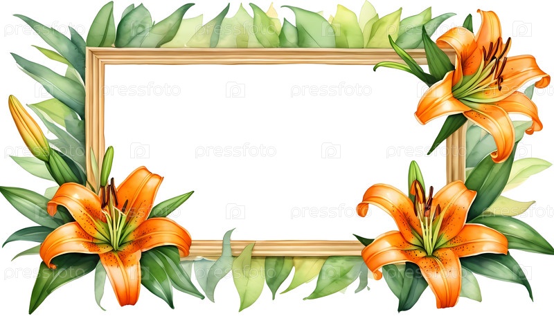 Творческий макет акварели с яркими оранжевыми лилиями в очаровательной цветочной раме для различных праздников и приветствий, персонализированных сердечными сообщениями Генеративный ИИ