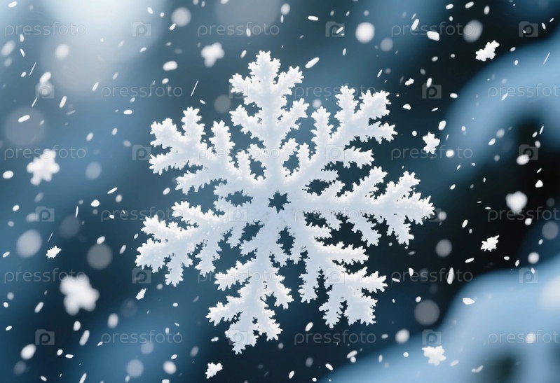 Снежинка спускается через воздух, окруженный всплеском снега во время зимнего сезона.Настройка имеет размытый фон со снегом и холодной погодой Generative AI
