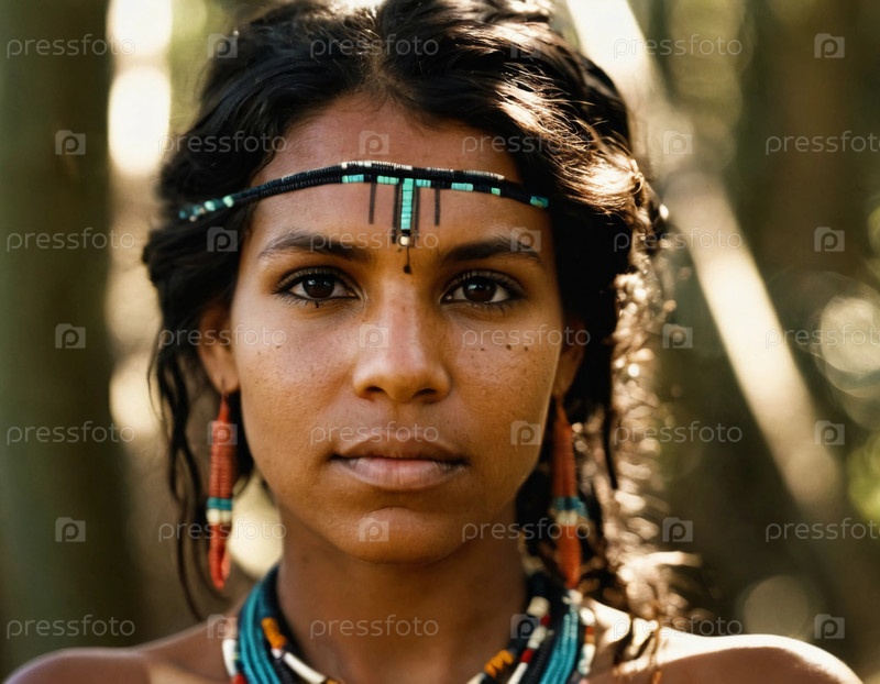 Молодая австралийская аборигенка излучает силу и грацию, нося яркие традиционные украшения Generative AI
