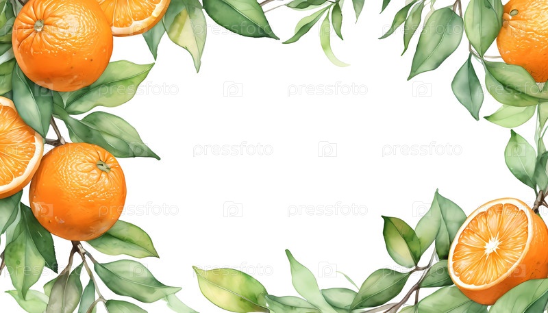 Красочный дизайн акварели с оранжевыми плодами создает яркую раму для пустых приглашений или открыток, демонстрирующих художественную элегантность Generative AI