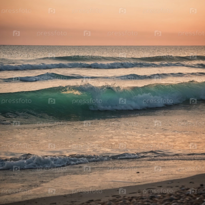 Мягкие волны обрушиваются на берег, когда заходит солнце и бросают теплые оттенки по небу. Спокойные воды отражают угасающий свет, приглашая к релаксации и спокойствию