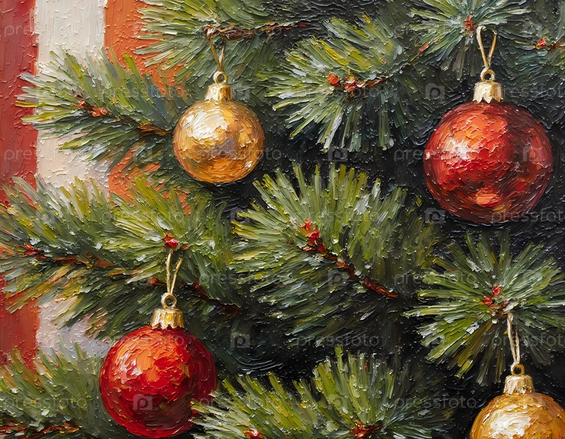 Рождественская елка наполнена блестящими шарами, висящими с ее ветвей.Декорация добавляет праздничное настроение к праздничному сезону в теплом помещении Generative AI