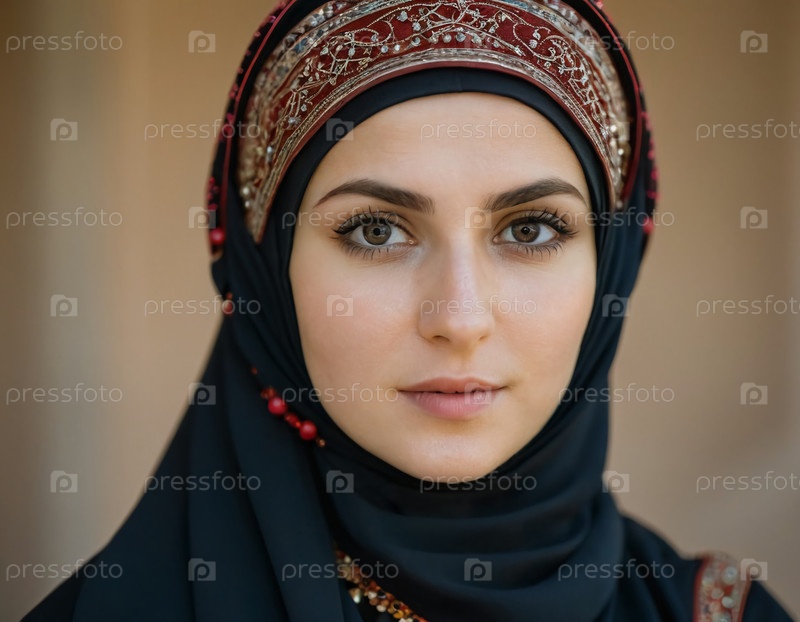 Молодая женщина в ярком традиционном костюме очаровывает поразительными чертами, воплощая суть чеченской культуры и истории Generative AI