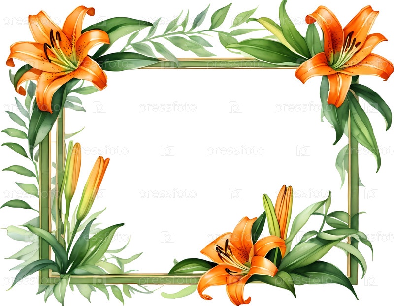 Элегантные оранжевые лилии создают яркие рамки для специальных приветствий и объявлений, идеально подходят для любого праздника или личного сообщения о том, чтобы дорожить генеративным AI