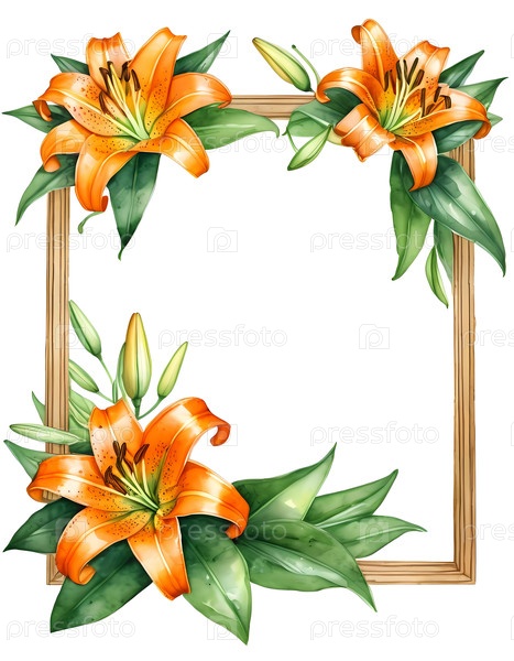 Ярко-оранжевые лилии в акварельной раме создают идеальный пустой холст для ваших сердечных сообщений по особым случаям Generative AI