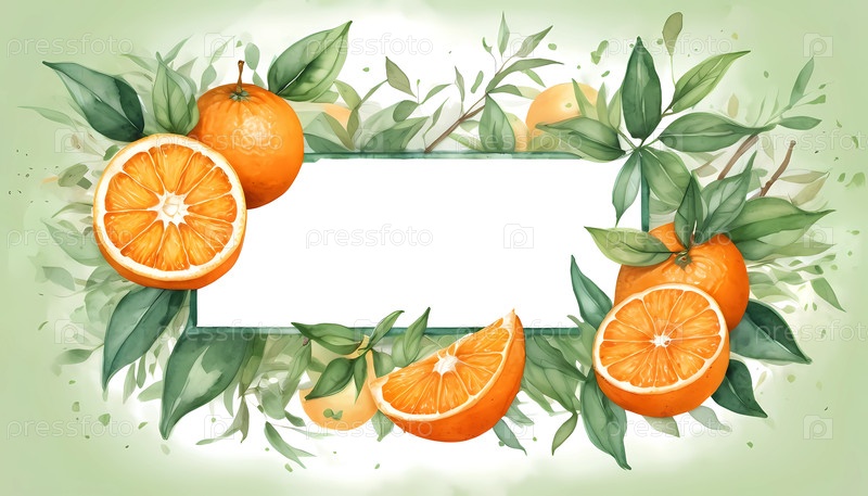 Вибрирующее оранжевое фруктовое акварельное искусство создает радостное пустое пространство для персонализированных надписей в свежем ботаническом макете Генеративный ИИ