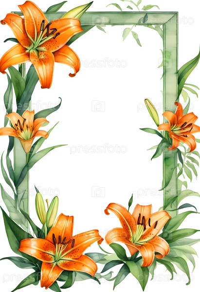 Отпразднуйте особые моменты жизни с ярко-оранжевыми лилиями в красиво спроектированном макете акварели, идеально подходит для поздравительных открыток и приглашений на любой случай Generative AI