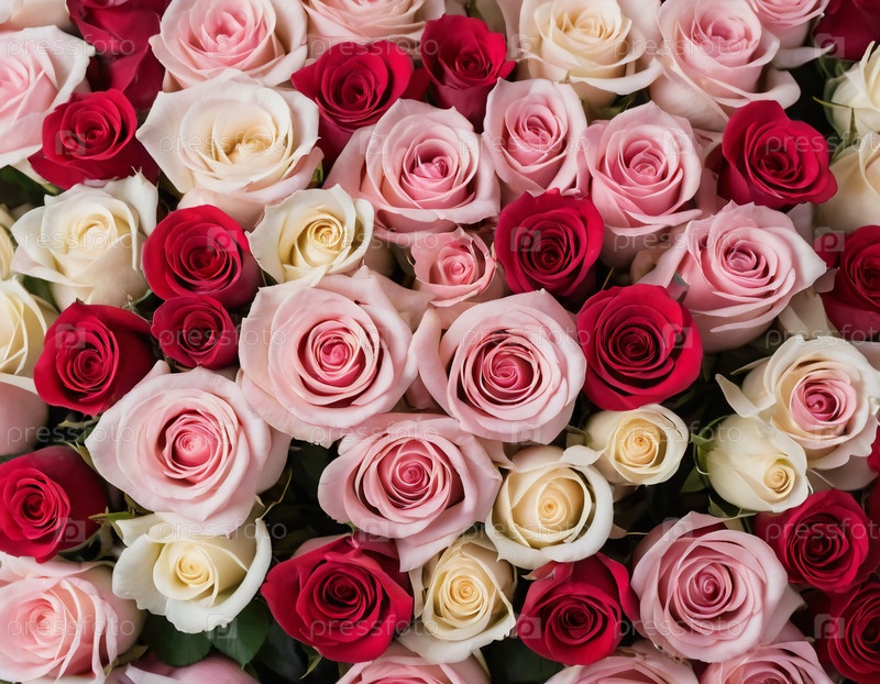 Потрясающая коллекция роз в оттенках красного, розового и крема создает яркий цветочный дисплей, идеально подходящий для улучшения любого праздничного собрания или романтического случая