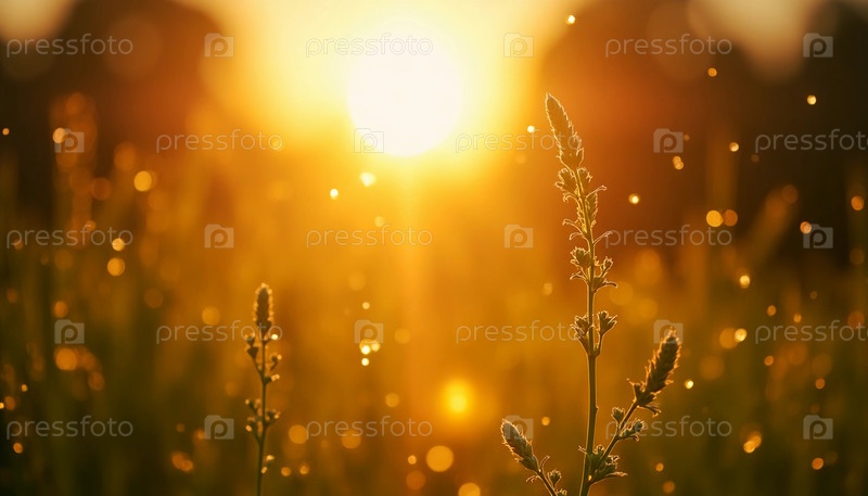 Утренний свет танцует над полем высокой травы, освещая нежные капли росы и наполняя воздух чувством мира и новых началов Generative AI