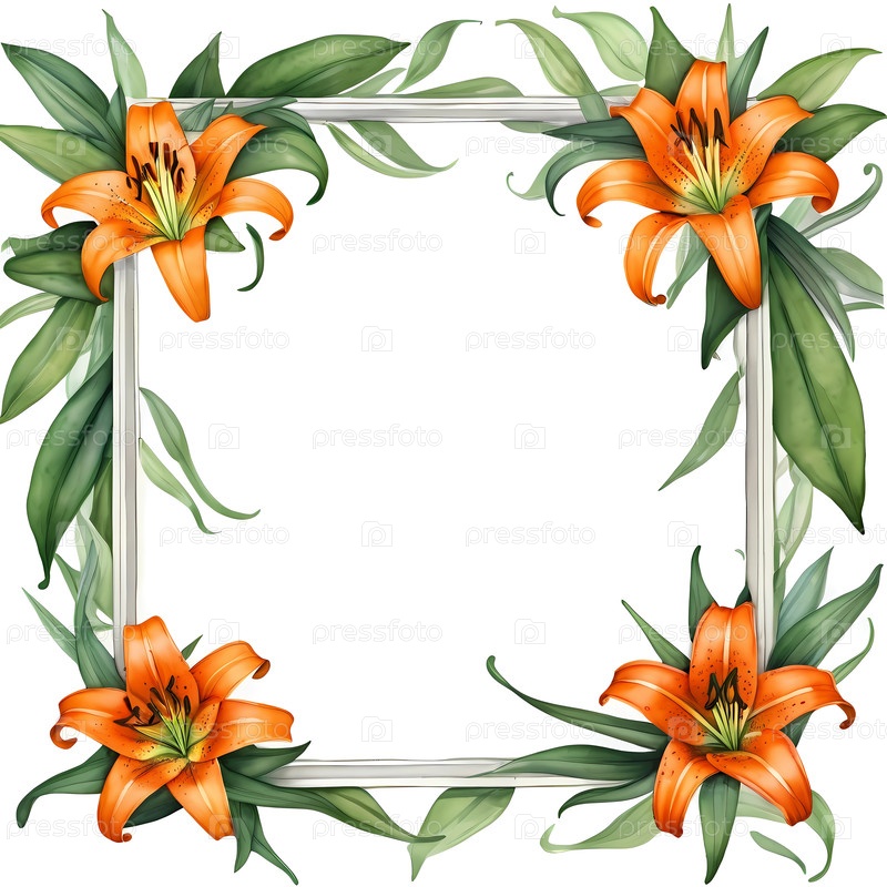 Эта художественная открытка демонстрирует яркие оранжевые лилии, создавая элегантную раму с листовыми акцентами.Идеально подходит для различных праздников, она приглашает сердечные сообщения для любимых людей
