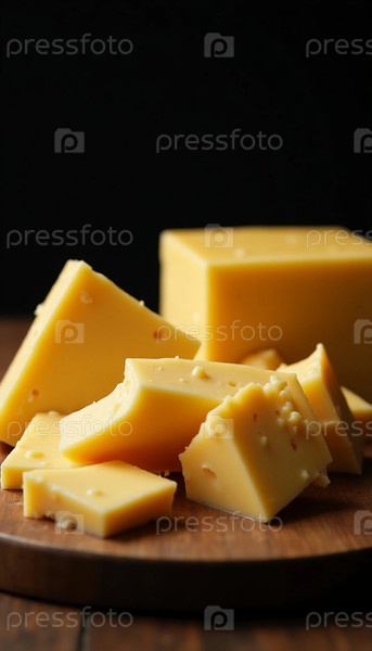 Золото-желтый сыр художественно расположен на деревянной доске, его богатая текстура и яркий цвет приглашают к кулинарному творчеству
