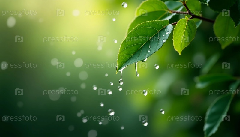 Свежие капли прилипают к пышным зеленым листьям, отражая проблески солнечного света. Спокойная атмосфера приглашает на созерцание и восхищение красотой природы после дождя