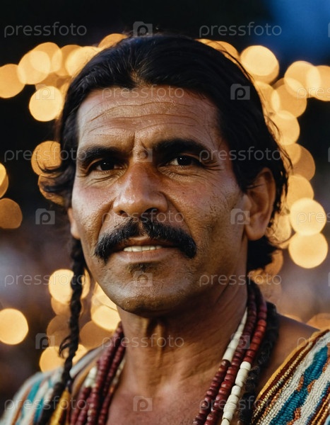 Мужчина-абориген гордо стоит в традиционной одежде и ювелирных украшениях, празднуя культуру и наследие под звездной ночью, излучая тепло
