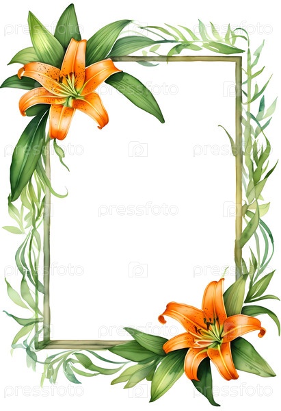 Нежные оранжевые лилии занимают пустое пространство для творческого выражения в этом очаровательном макете акварели, расположенном на открытке Generative AI