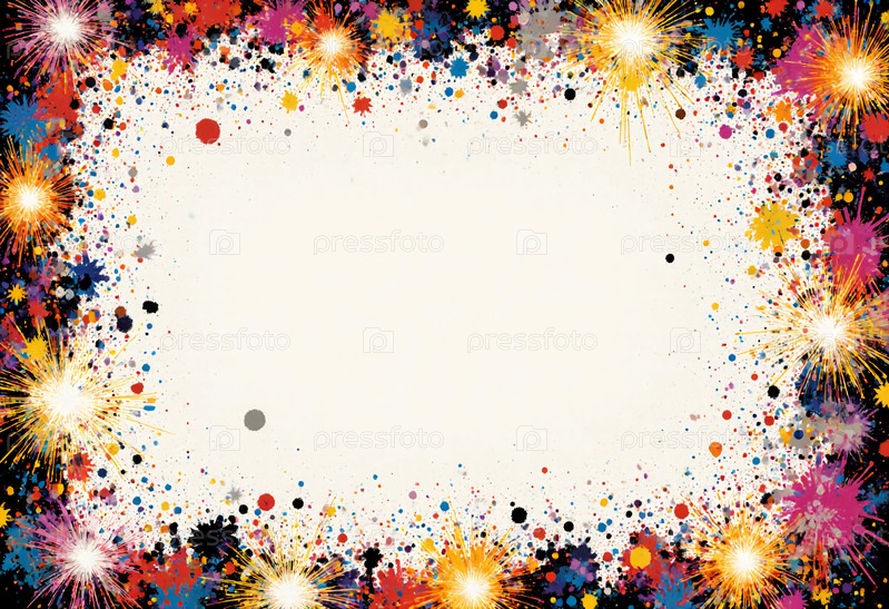 Фейерверки освещают ночное небо различными цветами, создавая яркий фон.Центр сцены пустой, идеально подходит для добавления текста или объявлений о событиях Generative AI