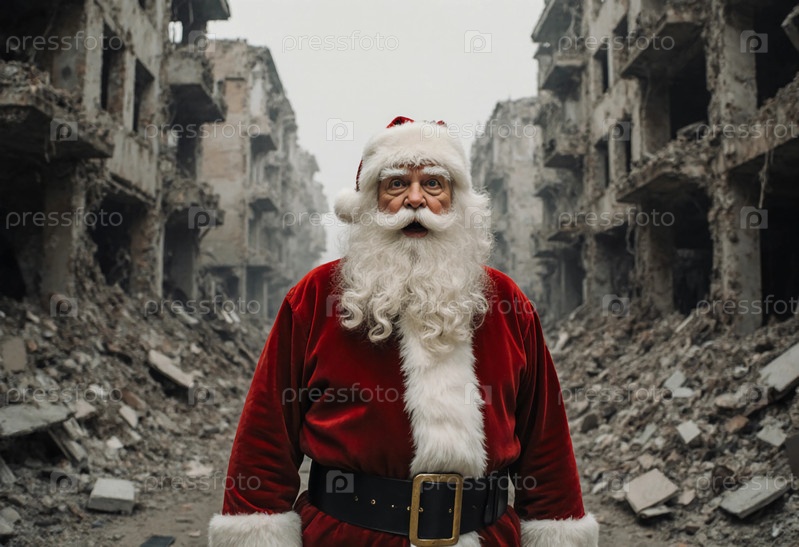 Санта-Клаус, несущий мешок с подарками, оказывается в зоне боевых действий. Он шокирован разрушениями и видом руин. Рождество и Новый год во время бомбардировок. Понятие войны и мира