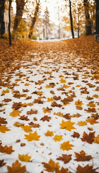 Спокойная тропа, покрытая одеялом упавших золотых листьев, приглашает к спокойным прогулкам в мирном парке, когда среди деревьев раскрывается красота осени