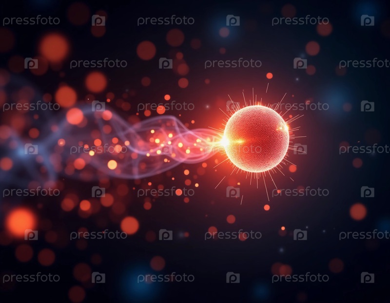 Яркие частицы вращаются в космическом танце, излучая радиационную энергию при взаимодействии, демонстрируя красоту научных исследований и открытий Generative AI