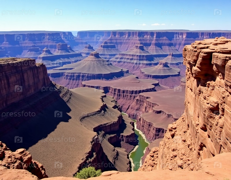Потрясающие виды демонстрируют огромные просторы Гранд-Каньона с драматическими скальными образованиями, сложенными в богатых красных цветах
