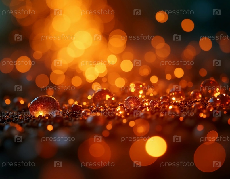 Капли воды блестят, когда они отдыхают на поверхности, освещенные теплым светом близлежащих углях, создавая мистическую атмосферу при закате Генеративный ИИ