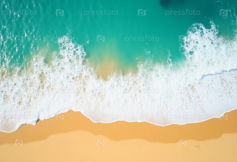 Яркие бирюзовые воды целуют мягкую золотую береговую линию, создавая спокойный контраст под чистым голубым небом в тихий летний день.Приглашающий пляж демонстрирует красоту природы